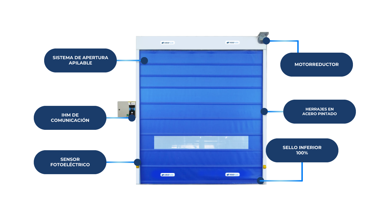 Las puertas rápidas Visoflex modelo VFX 501 fueron desarrolladas para empresas que requieren aplicaciones de gran escala, agilidad y protección.