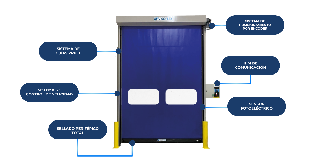 La puerta VFX 700 es la solución que combina alta estanqueidad, protección de la materia prima y bajo mantenimiento. Para aplicaciones interiores con alto caudal.